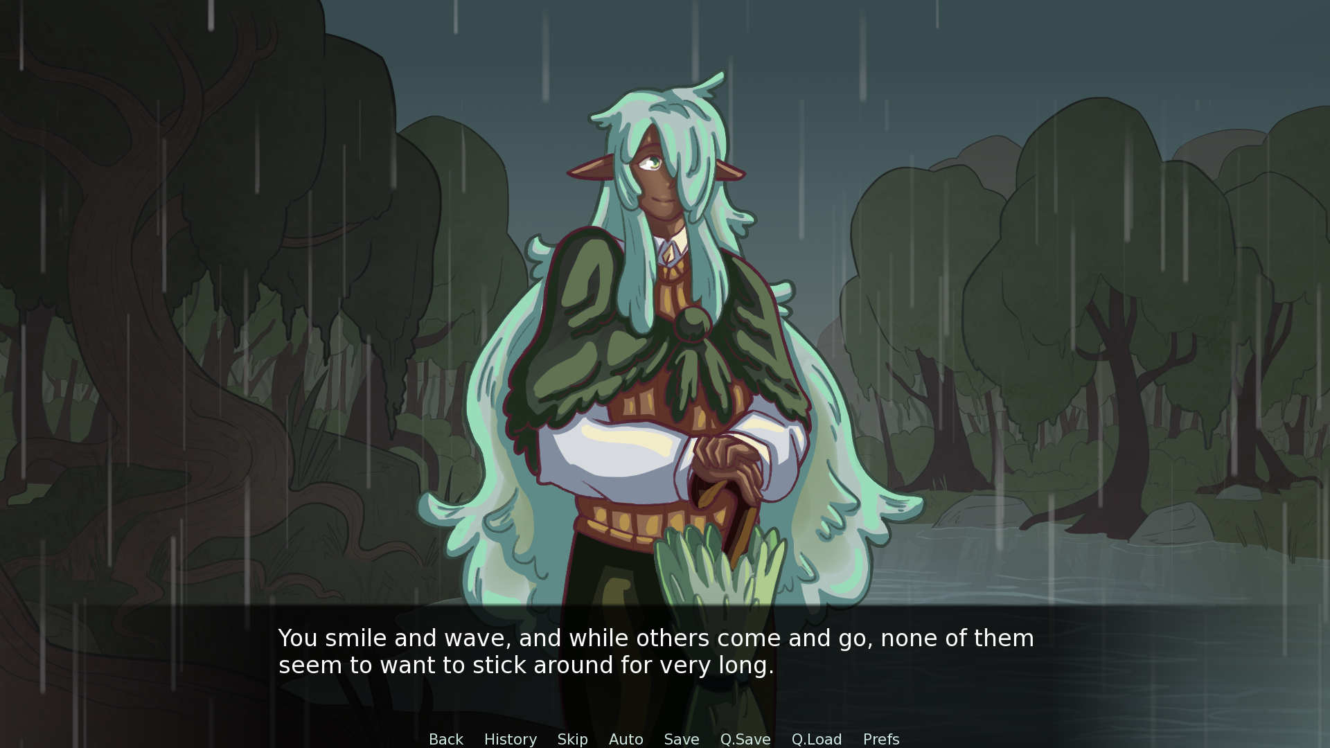You are the largest willow tree in the swamp. Sadly, you find yourself lonely, never feeling any connection with those who would seek sanctuary among your leaves. But you haven't lost hope. Surely you'll meet someone you connect with. As luck would have it, someone is approaching! Who could it be? A timid orchid? A fierce wasp? A polite spider? Perhaps you could form a kinship with them... or perhaps something more?